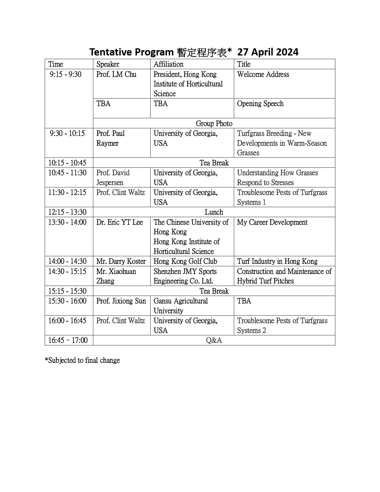 Organizers: Hong Kong Institute of Horticultural Science; Horticulture Exchange Foundation Ltd; Department of Construction, Environment and Engineering, Technological and Higher Education Institute of Hong Kong and University of Georgia, USA