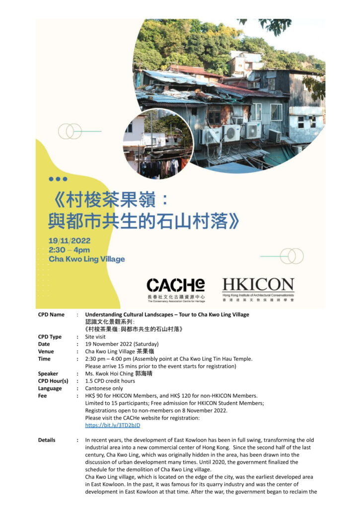 HKICON CPD Event-Understanding Cultural Landscapes – Tour to Cha Kwo Ling Village