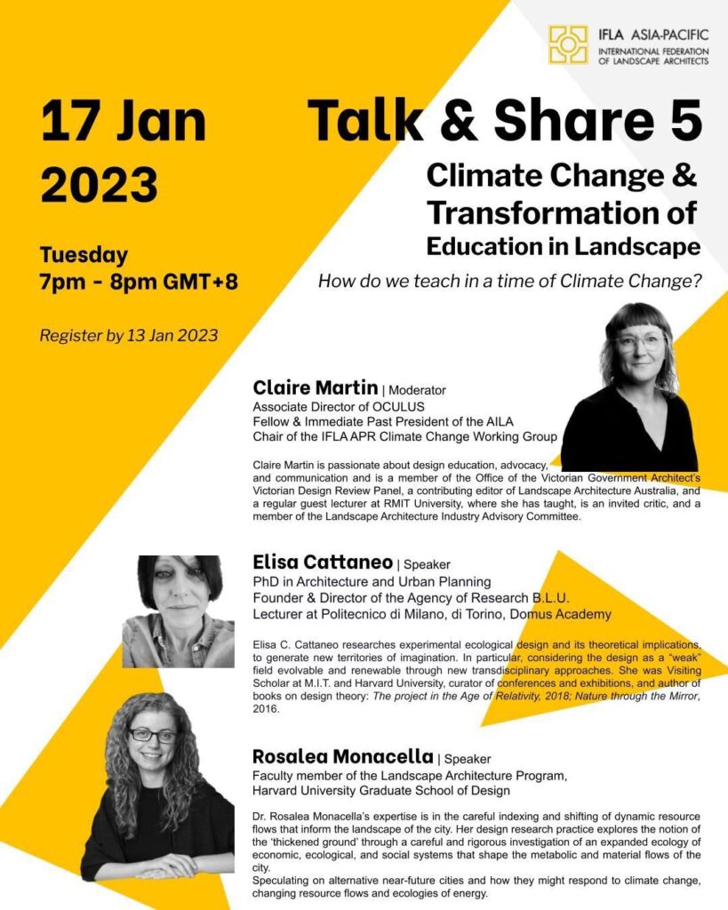 Speakers: Elisa Cattaneo, Prof. of Landscape Architecture at Politecnico Di Milano,