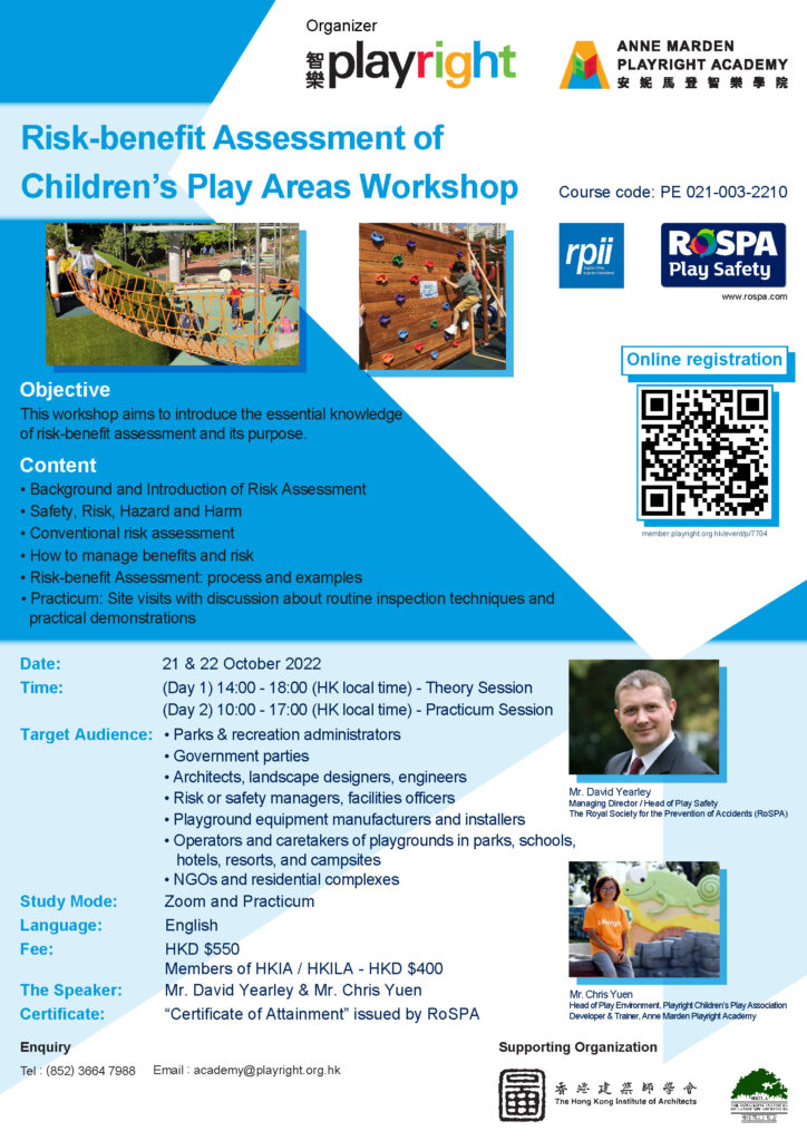 Risk – Benefit Assessment (RBA) of Children’s Play Areas Workshop