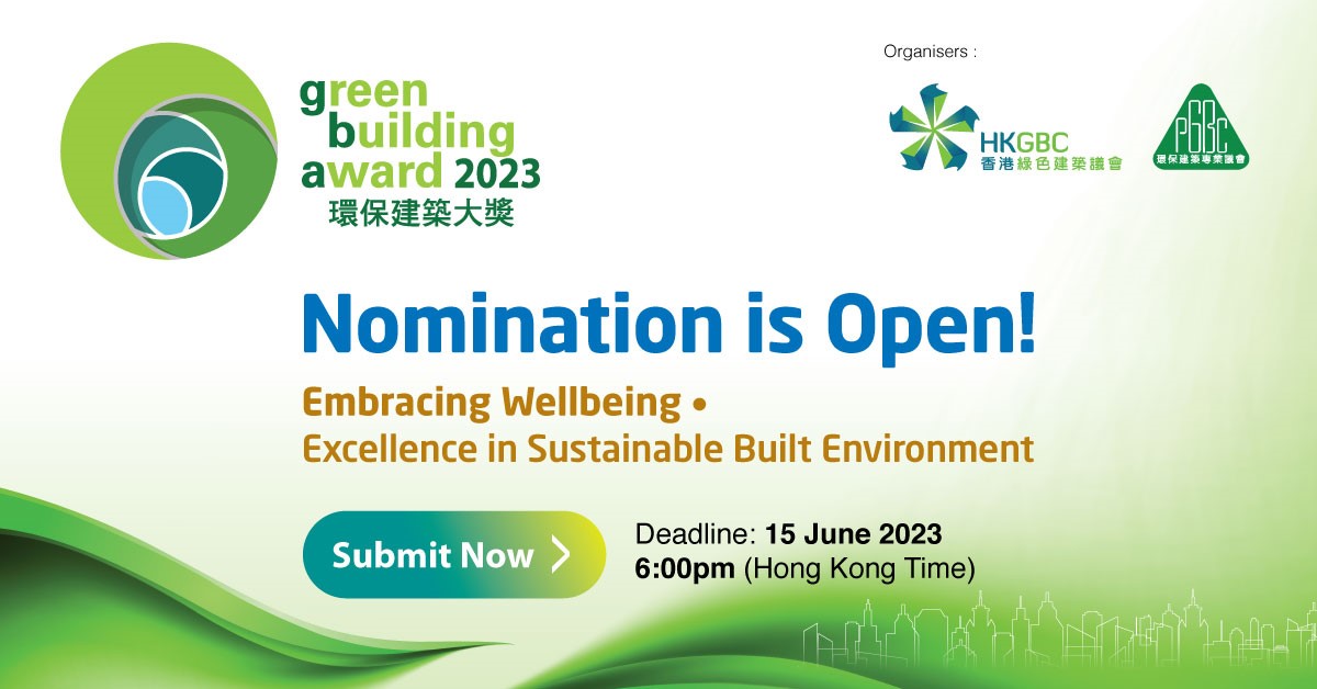 To echo the theme of Green Building Award 2023 (GBA 2023) – “Embracing Wellbeing. Excellence in Sustainable Built Environment”, we are looking for nominations that demonstrate significant contributions across FIVE Award Categories, including “New Buildings”, “Existing Buildings”, “Research & Planning”, “Building Products & Technologies”, and “Green Building Leadership”. Act now and submit your nominations to showcase your fabulous projects and our institute’s innovative green efforts!