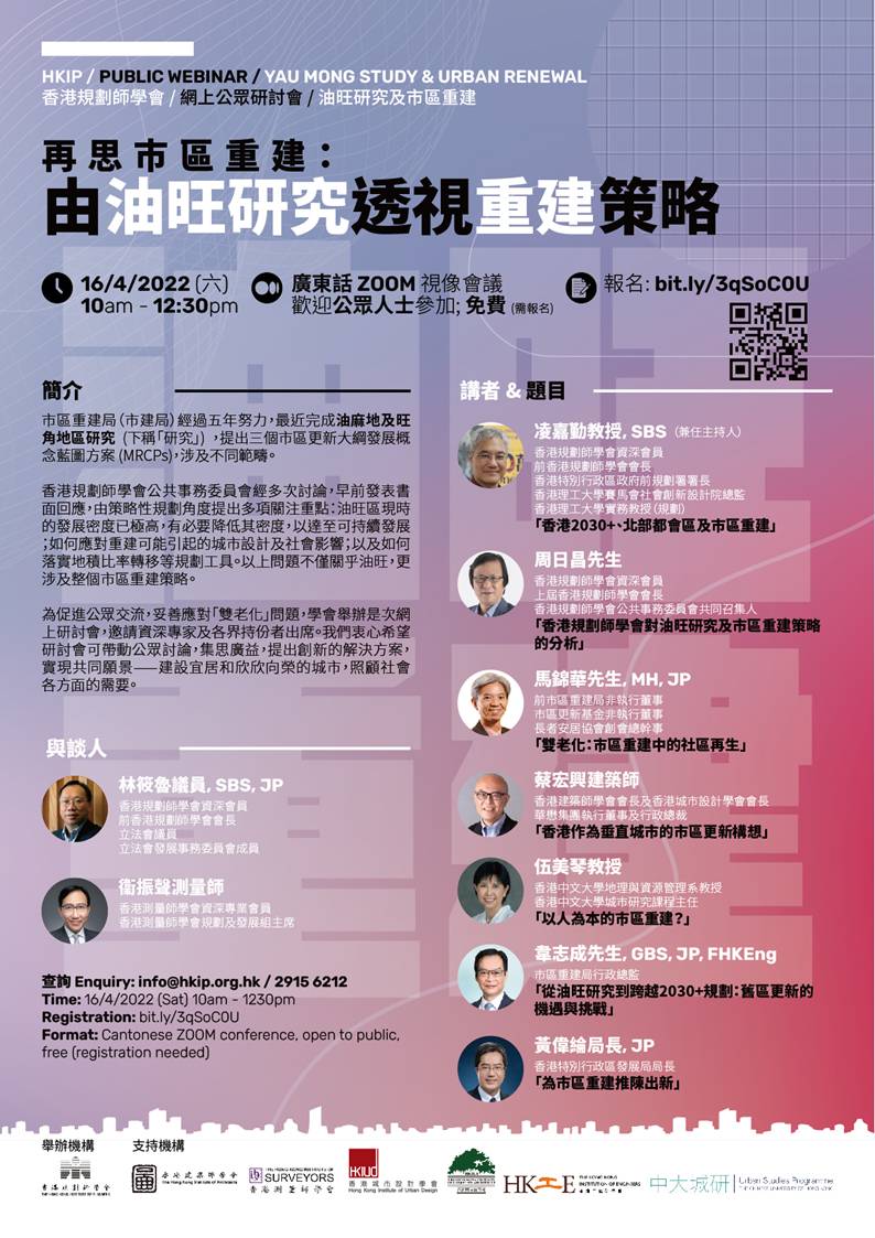 Home > Events > HKIP Public Webinar – Yau Mong Study & Urban Renewal