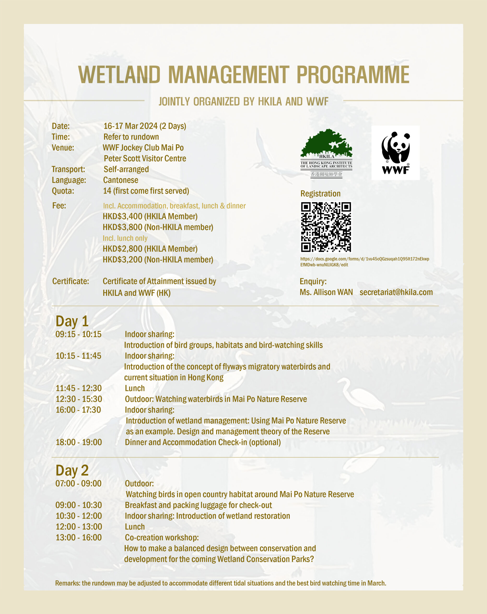 Organizer (s): Jointly organized by The Hong Kong Institute of Landscape Architects and World Wildlife Fund Hong Kong