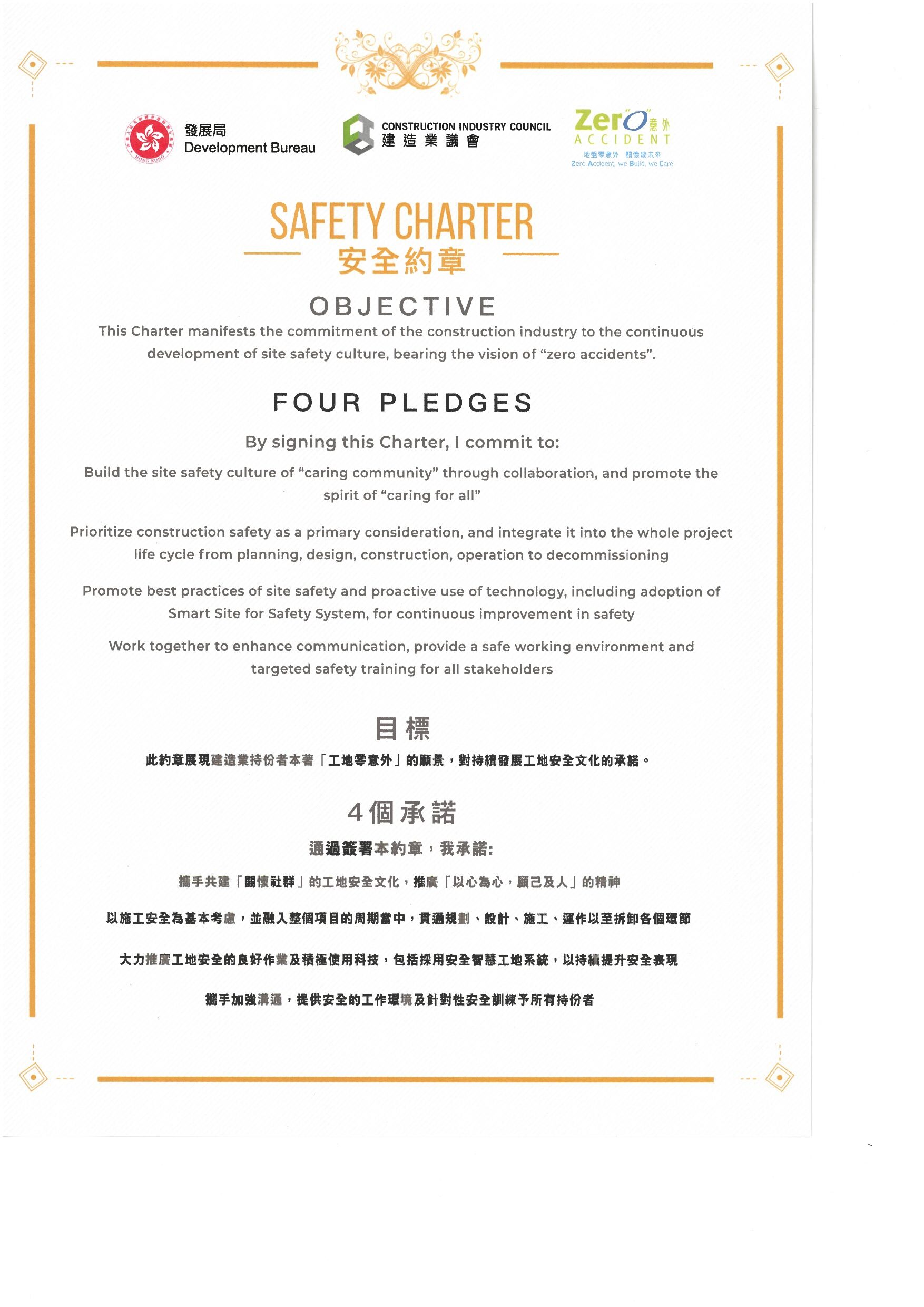 HKILA was one of the participating organizations to the Construction Safety Summit 2022 and we have also signed the Safety Charter as shown below: